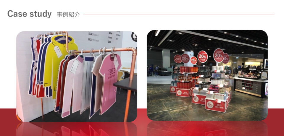 黒板、ホワイトボードにも変更可能。デザイン溢れたカット、ダイレクト印刷も可能です。FSC認証またはPEFC評議会に認定された100%リサイクル可能な新ECO資材。プラスチックボードの代替品。POS/POP、ディスプレイ、什器、看板、販促品にご使用いただけます。環境に優しい素材を使用することでブランドイメージアップも演出できます。